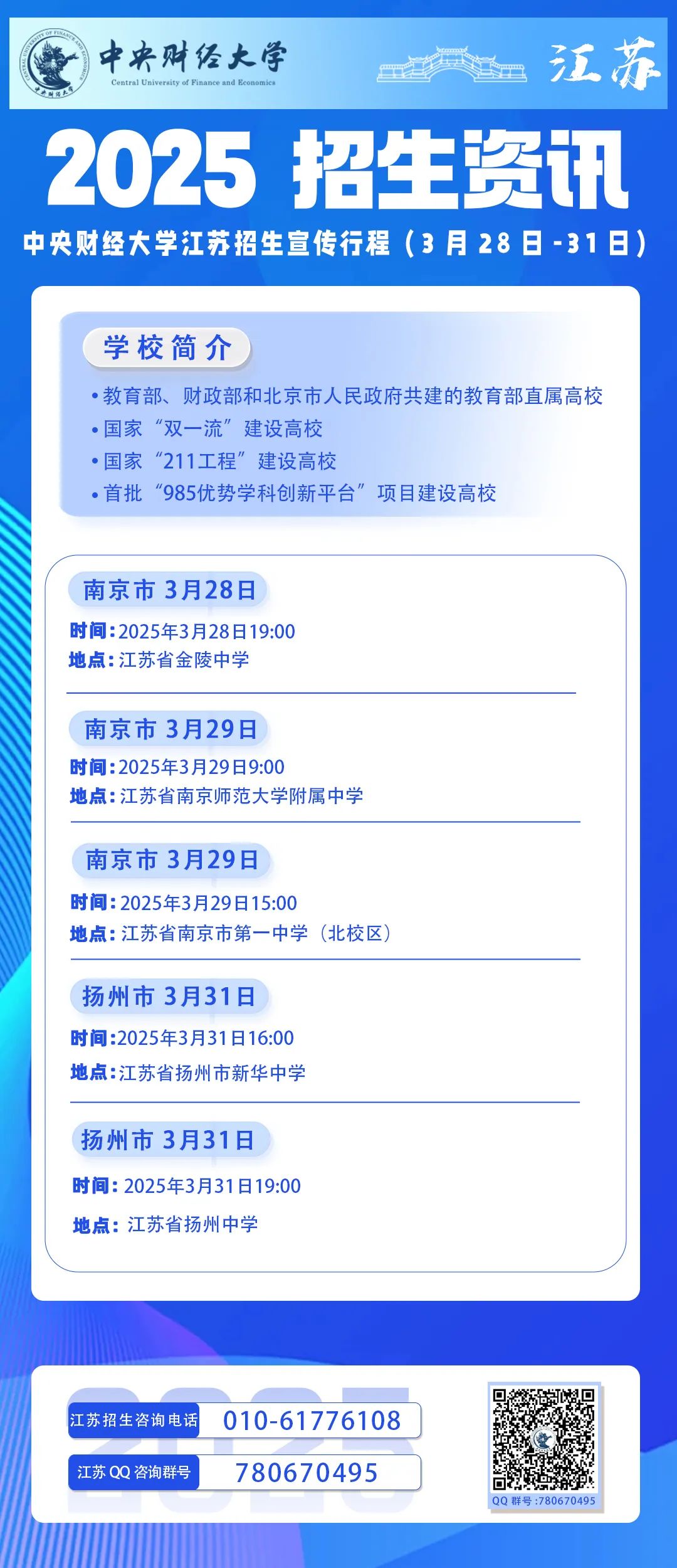 招生资讯|新葡的京集团8814江苏招生宣传行程(3月28日-3月31日)