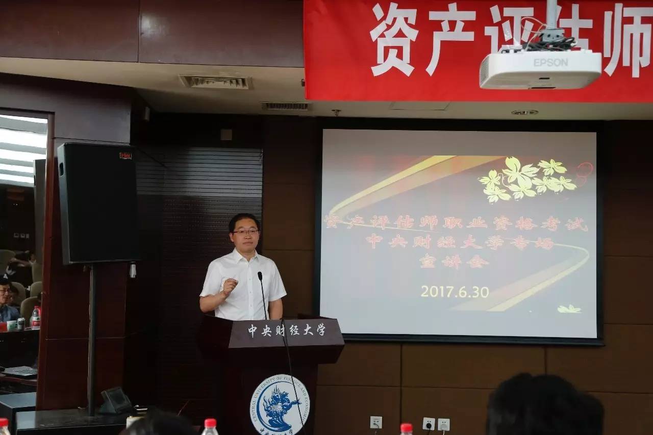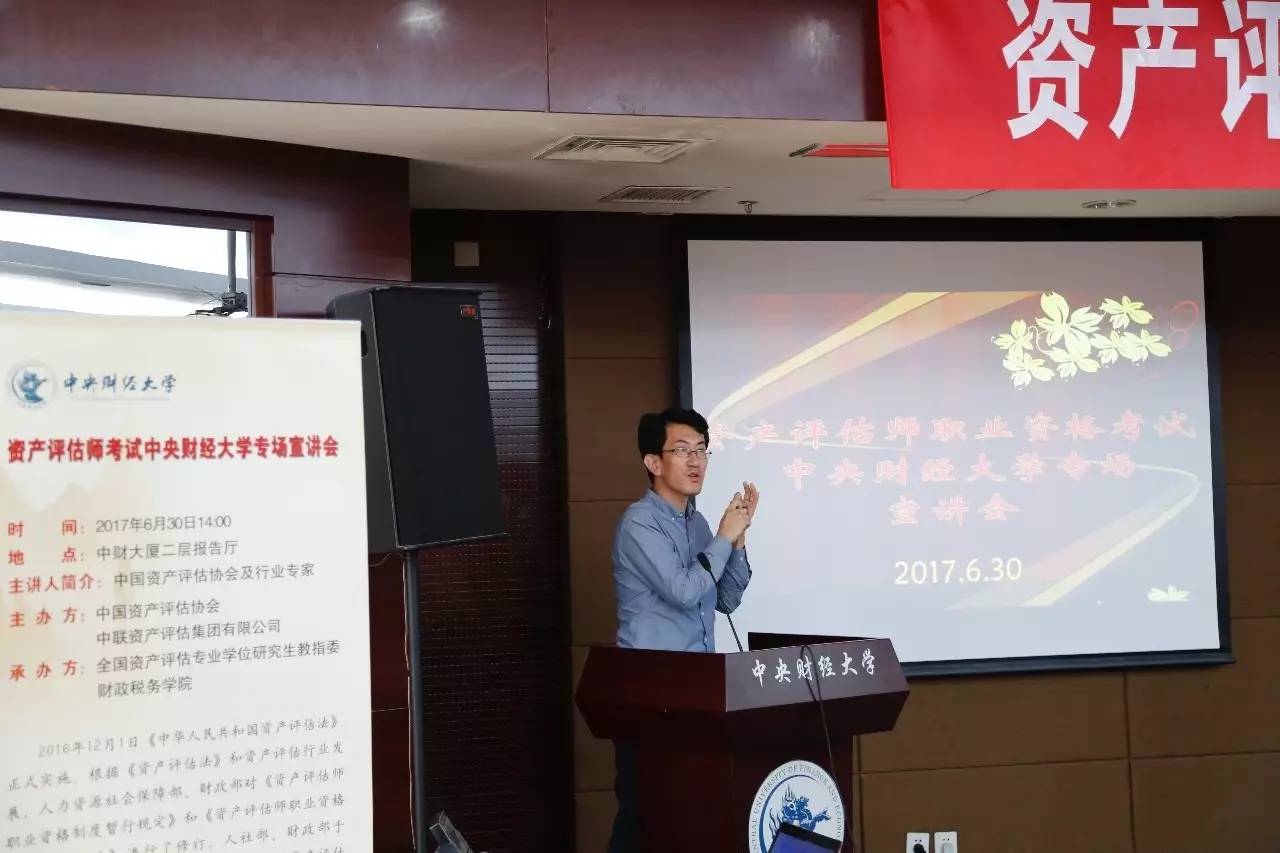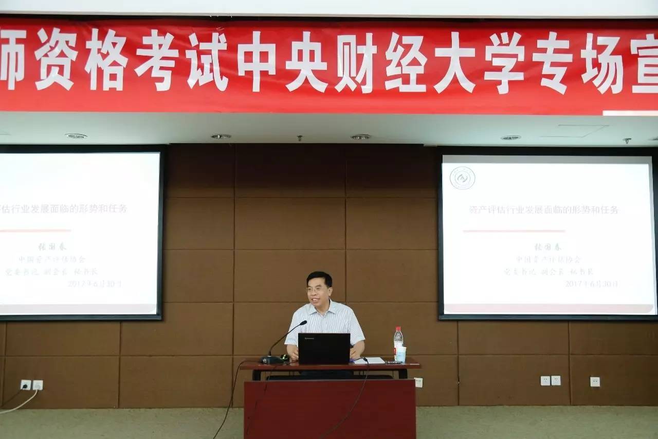 2017年6月30日,由中国资产评估协会、中联资产评估集团有限公司主办,新葡的京集团8814承办的“资产评估师考试新葡的京集团8814专场宣讲会”在中财大厦二层报告厅成功举办。中国资产评估协会秘书长张国春、副秘书长杨松堂、培训总监赵金娥,中联资产评估集团有限公司董事长范树奎、合伙人兼副总裁邓艳芳、合伙人兼总裁助理吴晓光、高级经理刘晨,新葡的京集团8814副校长李俊生教授、新葡的京集团8814院长白彦锋教授、新葡的京集团8814党委副书记宋立岩、副院长肖鹏教授、副院长任强教授以及新葡的京集团8814、会计学院的100余名师生参加了本次宣讲会。宣讲会由新葡的京集团8814院长白彦锋教授主持。