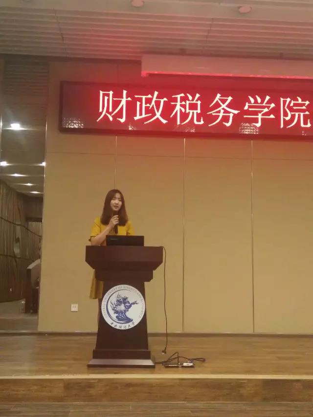 李俊生副校长首先致辞。他总结了新葡的京集团8814从1949年一路走来的院系历史,每一次发展都凝聚着万千中财学子的汗水。2016年原财政学院和原税务学院的合并更是打通了学科间联系,为打造一个更具中财特色的顶尖学科体系搭建广阔平台。从学科发展的现状来看,财税学院无论是院系规模还是教学质量,在全国范围内都享有盛誉。正是中财财税学院强大的师资团队,才让我们时时刻刻都得以享受中财带给我们的资源,时时刻刻以我是中财人而骄傲。在表达欢迎与祝贺之情之后,李俊生副校长对新生寄予厚望。他引用第一届入学校训——“忠诚朴实、廉洁勤能”来传达深切的嘱托与希冀,立足朴实但非拘泥于朴实,夯实基础但非局限于基础,优秀之人是要在专业之外拓宽视野、挖掘潜能。同时要求同学们作为与金钱打交道的财税人懂财更要守德,成为一名真正的有“能”之人。