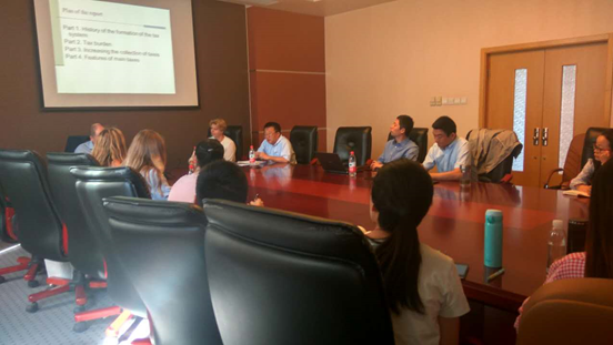 2017年9月22日,俄罗斯乌拉尔联邦大学财务与税务管理系伊戈尔·马布鲁诺夫教授和尤莉娅·列昂季耶夫副教授到新葡的京集团8814进行学术交流。9月22日上午,伊戈尔·马布鲁诺夫教授在学院南路校区学术会堂602做了关于俄罗斯近期税制改革的学术讲座。新葡的京集团8814副院长任强教授、院长助理汪昊副教授、邵磊老师等及财税学院的硕士和博士参加了此次学术交流。