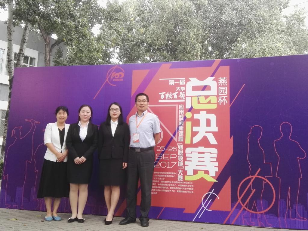 教育部首届大学生“百校百题”应用型创新课题(财税领域)复活赛,2017年9月26日在北方工业大学大学举行,新葡的京集团8814的课题小组在研究生组的比赛中,凭借着出色的发挥,获得教育部首届“百校百题”应用型创新课题(财税领域)大赛总决赛优胜奖,“财税风芸”团队获得了此次大赛最佳风采奖。