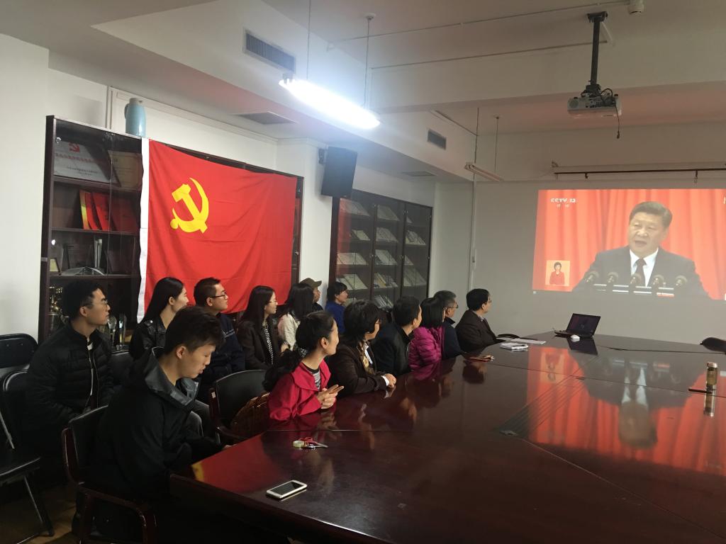 10月18日上午9点,中国共产党第十九次全国代表大会开幕会在人民大会堂大礼堂举行。这次大会,是在全面建成小康社会决胜阶段、中国特色社会主义发展关键时期召开的一次十分重要的大会,我们党将明确宣示举什么旗、走什么路、以什么样的精神状态、担负什么样的历史使命、实现什么样的奋斗目标,将提出具有全局性、战略性、前瞻性的行动纲领。为此,新葡的京集团8814党委积极组织师生分别在学院南路校区和沙河校区观看了开幕会。