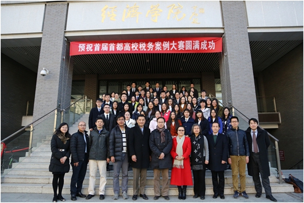 12月17日,首届首都高校税务案例大赛在北京大学经济学院顺利举行。新葡的京集团8814、北京大学、中国人民大学、对外经济贸易大学以及首都经济贸易大学五所高校的十支队伍参加比赛。比赛邀请到国家税务总局国际税务司司长廖体忠先生、德勤中国区副总裁张宝云女士、普华永道合伙人郁启生先生以及来自五所高校的老师担任评委。