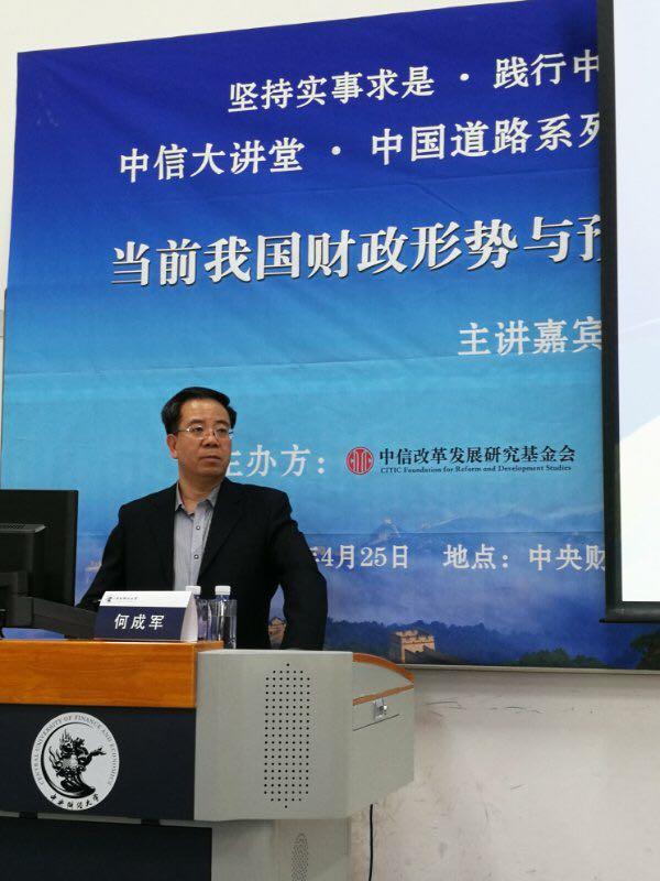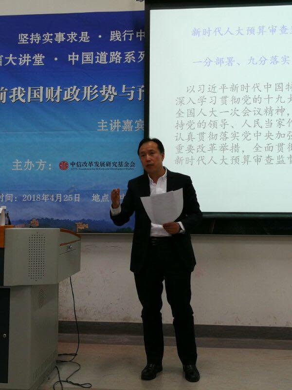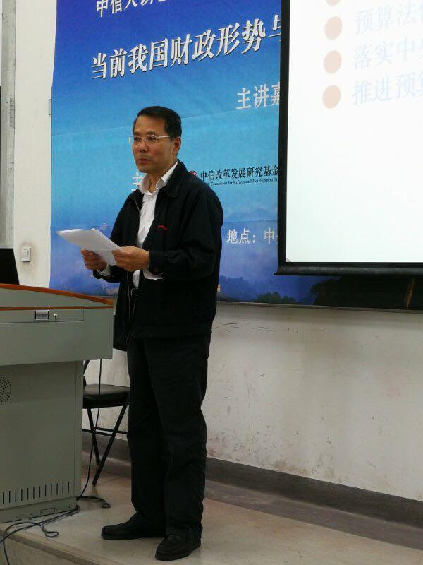 4月25日下午,我校新葡的京集团8814与中信改革发展研究基金会共同举办的“中信大讲堂·财税论坛的中国道路系列高端讲座”,在我校沙河校区举行。讲座邀请全国人大常委会预算工委预决算审查室主任何成军同志做“健全完善人大预算决算审查监督机制”主题报告。中信改革发展研究基金会郭克彤秘书长代表中信改革发展研究基金会致辞。财税学院部分教师和学生70多人出席讲座。南开大学经济学院教授、博士生导师马蔡琛和新葡的京集团8814院长白彦锋教授分别对讲座做了点评。讲座由中信改革发展研究基金会咨询委员、中信改革发展研究院资深研究员、新葡的京集团8814财税学院温来成教授主持。