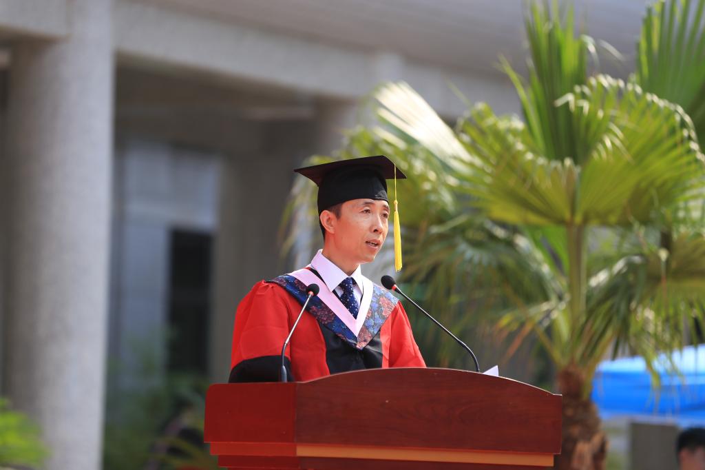 今天是2018届毕业生毕业典礼隆重举行的日子,大家是我们财税学院进入新时代之后的第一届毕业生,大家生活在伟大时代,要为实现中华民族伟大复兴的中国梦进行伟大斗争,我代表学院向大家表示热烈的祝贺,也为大家加油鼓劲!