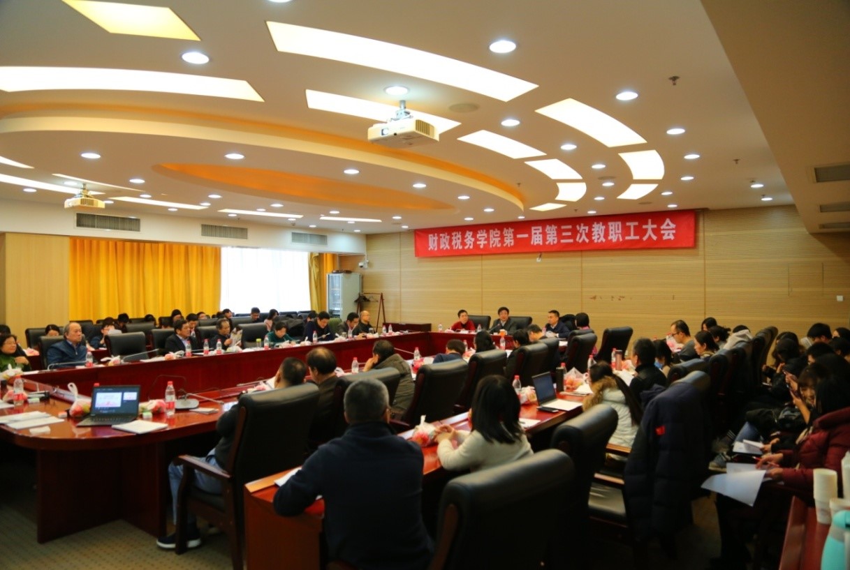2019年1月9日下午,新葡的京集团8814召开第一届第三次教职工大会暨财税学科建设研讨会。副校长马海涛、学院院长白彦锋、党委书记樊勇以及学院全体教职工出席了会议,樊勇书记主持大会。
