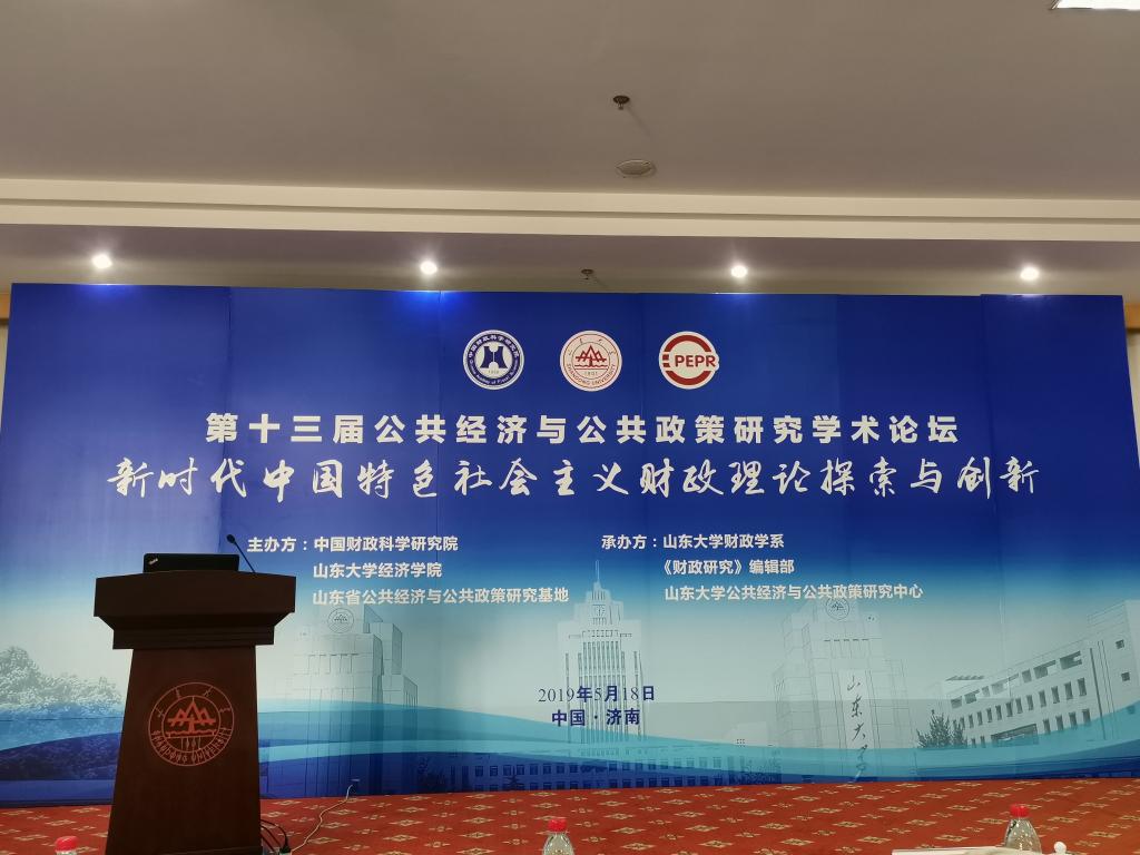 5月18日,由中国财政科学研究院、山东大学经济学院、山东省公共经济与公共政策研究基地共同主办的第十三届公共经济与公共政策研究学术论坛在山东大学举行,本次论坛的主题是“新时代中国特色社会主义财政理论探索与创新”。山东大学校长樊丽明、中国财政科学研究院院长刘尚希、东北财经大学原副校长马国强、中南财经政法大学校长杨灿明、中国财政科学研究院副院长傅志华出席会议。新葡的京官网副院长肖鹏教授参加了本次研讨会,并就参会学者提交的论文进行重点评议交流。