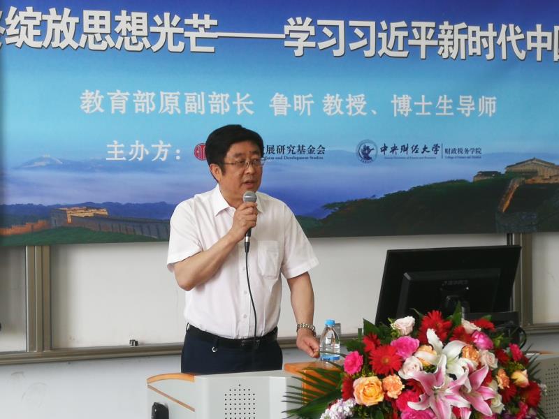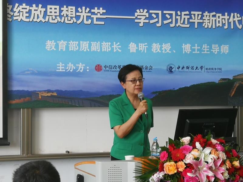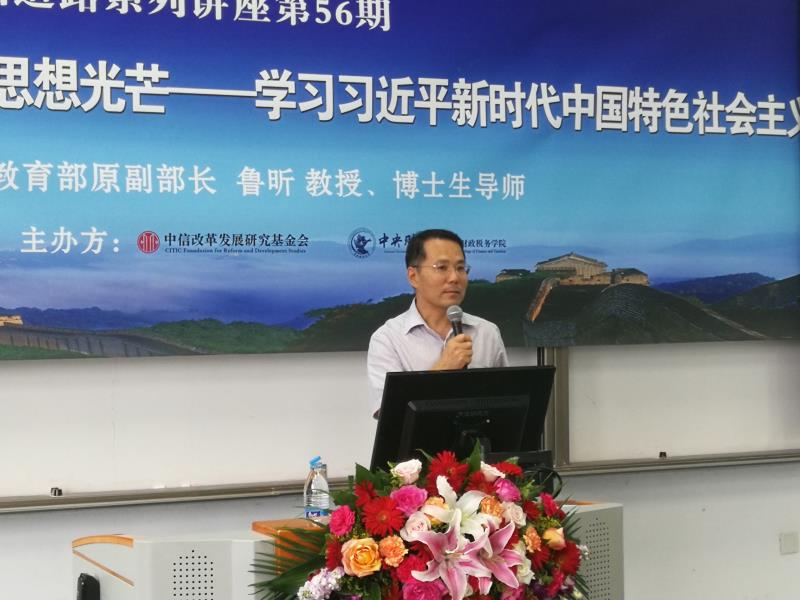 2019 年 6 月 17日下午,中信改革发展研究基金会、新葡的京集团8814共同举办的财政论坛▪ 中国道路系列讲座,在我校沙河校区举办。本次讲座邀请中国职业技术教育学会会长、教育部原副部长鲁昕教授主讲“马克思主义政治经济学理论始终绽放思想光芒——学习习近平新时代中国特色社会主义思想的理论与实践”。中信改革发展研究基金会郭克彤秘书长、新葡的京集团8814副校长马海涛教授、新葡的京集团8814院长白彦锋教授,以及财税学院100余名师生参加本次讲座。