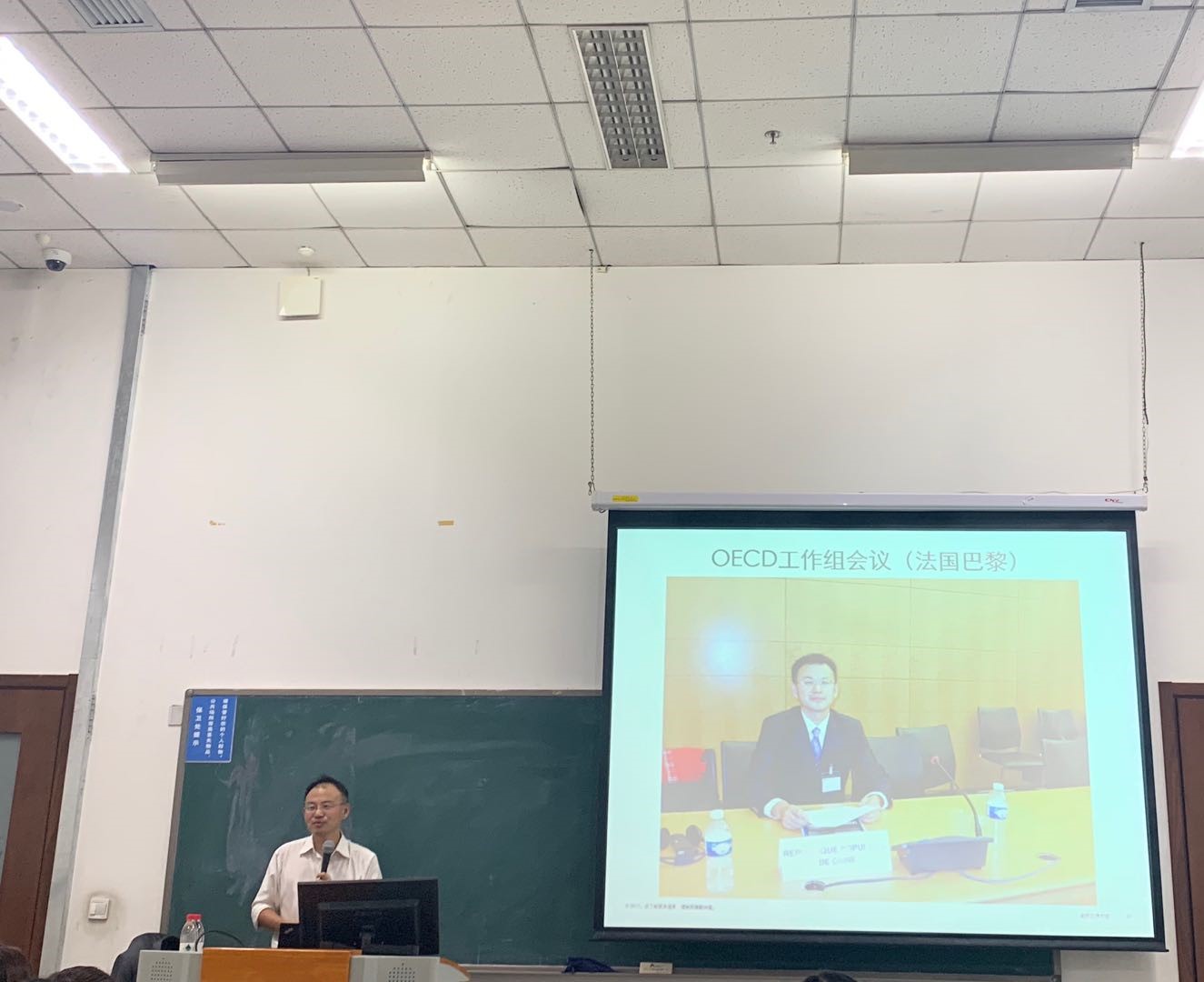 嵇峰老师以自身工作经历讲起,介绍了他26年税务工作的相关经历,同学们都被嵇峰老师讲述的内容深深吸引。税务法律服务包括日常遵从类、专题咨询类以及个案协调类,特别是个案协调类具有挑战性。嵇峰老师以历史上“官渡之战”为热身案例,引导同学们从形势判断、创新策略与风险承担三方面开展思考和讨论,赞赏在关键时刻“勇于担当,拼尽全力”精神。嵇峰老师分享了他在德国参加协定谈判的经历,丰富的照片充分调动了课堂氛围。