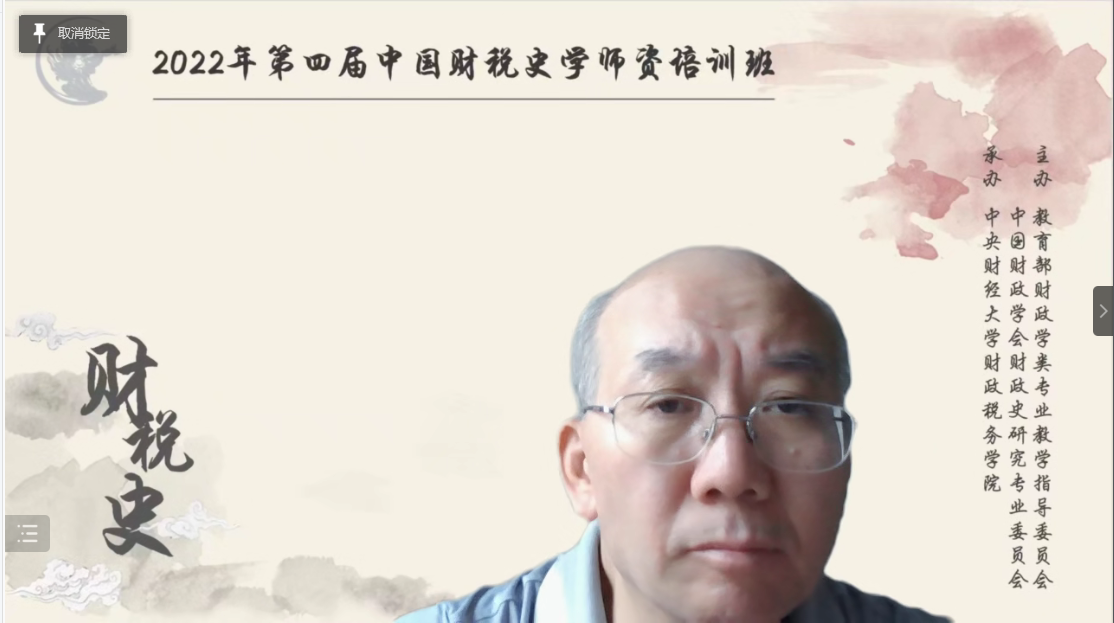 为贯彻落实习近平总书记关于深入开展党史、新中国史、改革开放史、社会主义发展史教育的重要指示精神,为更好履行教育部关于教学指导委员会“组织开展高等学校教师教学能力提升培训、学术研讨和经验交流”的职责要求,满足财政学类中国财税史骨干教师知识更新和教学方法交流的需要,2022年7月4日,由教育部高等学校财政学类专业教学指导委员会和中国财政学会财政史研究专业委员会共同主办,新葡的京集团8814承办的第四届中国财税史学师资培训班腾讯会议线上举行开班仪式。教育部高等学校财政学类专业教学指导委员会主任委员樊丽明,中国财政学会财政史研究专业委员会主任委员杨远根,新葡的京集团8814党委副书记、副校长马海涛、教育部高等学校财政学类专业教学指导委员会副主任委员李俊生、王乔、郭庆旺和秘书长石绍宾,授课专家代表、新葡的京集团8814教授孙翊刚,培训班学员代表、吉林财经大学教授安明友等领导和嘉宾出席开班仪式。开班仪式由新葡的京集团8814院长白彦锋主持。全国82名学员参加了第四届中国财税史学师资培训班。