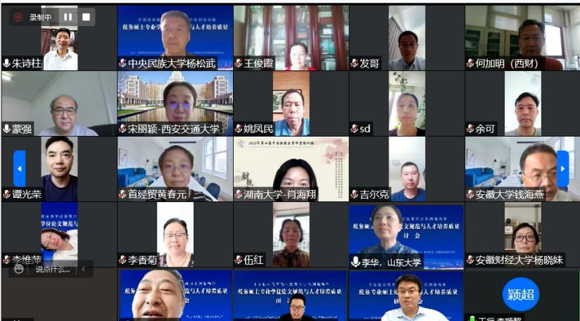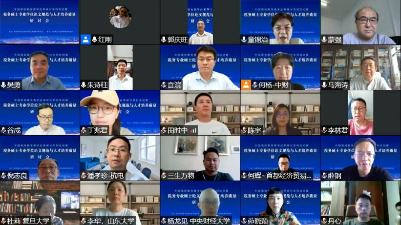 2022年7月8日,由全国税务专业学位研究生教育指导委员会主办,新葡的京集团8814税收教育研究所承办的“中国税收教育教学改革研讨系列活动暨税务硕士专业学位论文规范与人才培养质量研讨会”,通过线上会议形式成功召开。来自中国人民大学、厦门大学、复旦大学、首都经济贸易大学、新葡的京集团8814、湖南大学、山东大学、西安交通大学、中南财经政法大学、西南财经大学、中国社会科学院、南京财经大学、安徽大学、广东财经大学、贵州财经大学、内蒙古财经大学等全国多家高校及科研所的代表,共计230余人参加了会议。