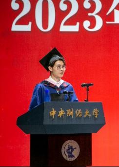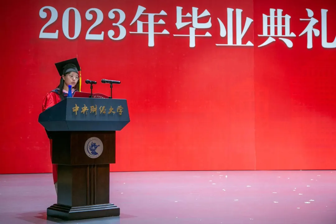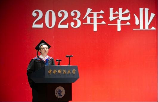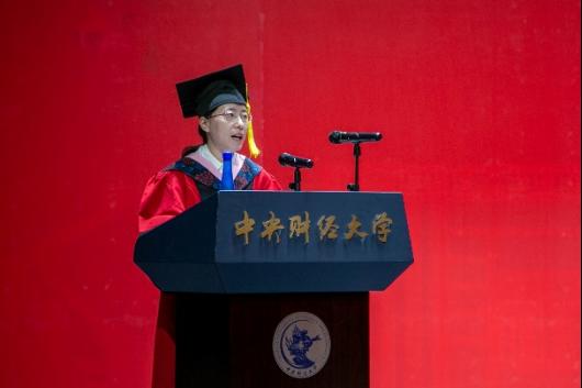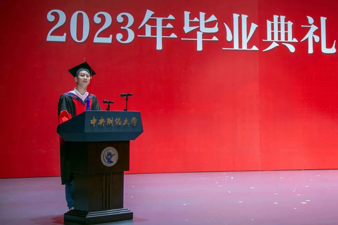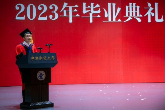 肖鹏书记宣读《关于表彰2023届本科优秀毕业生的通知》和《关于表彰2023届优秀毕业研究生的通知》,鼓励所有同学向优秀看齐,在未来的学习工作中,发扬财经人为国而生、与国同行的龙马精神,为社会和国家做出更大的贡献。