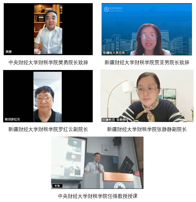 新葡的京集团8814财税学院樊勇院长、新疆财经大学财税学院贾亚男院长、罗红云副院长和教育部第十一批援疆干部张静静副院长参与了第一次课程。新葡的京集团8814财税学院的樊勇院长和新疆财经大学财税学院的贾亚男院长就本次课程的共享及合作致辞。