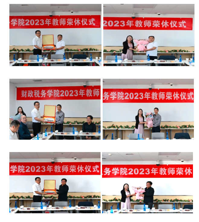 学院党委书记肖鹏向荣休老师们赠送了学院专门定制的纪念品,学院副院长刘金科向荣休老师们献鲜花。肖鹏书记代表学院感谢荣休老师们几十年来为学院各方面事业发展所做出的无私奉献,祝福老师们退休生活开启新篇章,真诚期待老师们未来继续关心和支持学院发展。