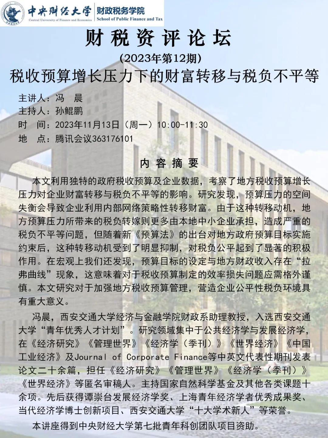 上一篇:【学术动态】财税学院举办财税资评工作坊第十期