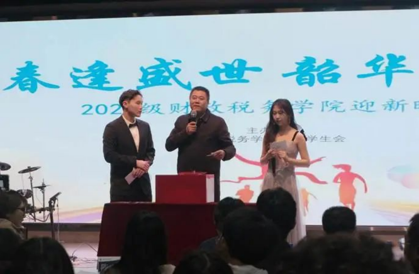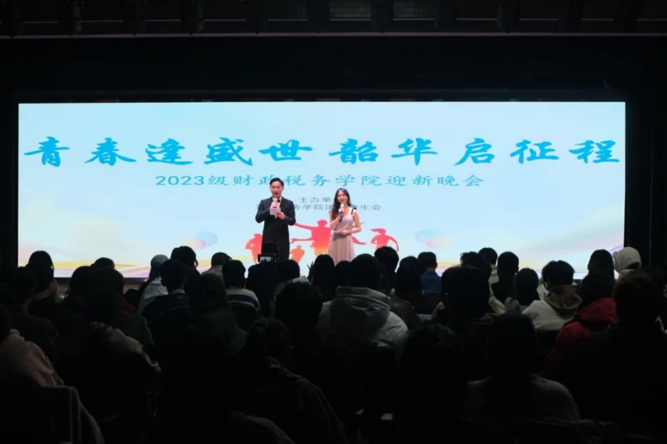 11月8日晚,新葡的京集团88142023年迎新晚会于大学生活动中心精彩上演。本次晚会由院文体部策划与主办,学生会其他部门协办。学院党委副书记陈士平老师、学院团委书记吕一琪老师、23级辅导员徐燕妮老师、23级班主任邵磊、孙景冉老师以及第八届主席团成员姚军历、尹一凡、徐馨悦、张欣阳,与200余名同学一起观看了本次演出。晚会分为“灼灼华年,遇见财税”“孜孜求索,启航财税”和“熠熠生辉,逐梦财税”三个篇章;特别添加“家长寄语播放”和“中场抽奖”环节。