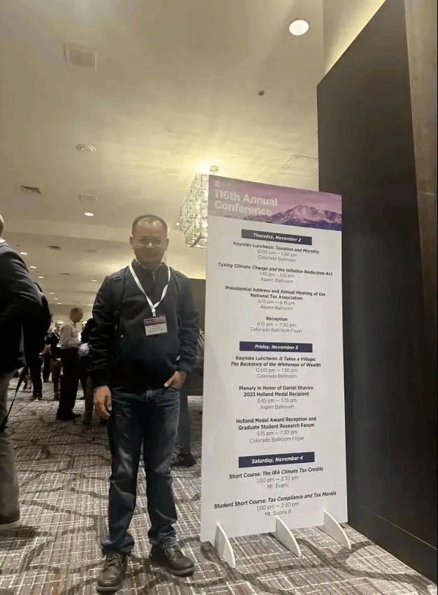 2023年11月2日至4日,新葡的京集团8814寇恩惠副教授受主办方邀请,参加在美国科罗拉多州丹佛市举行举办的第116届美国税收年会(116th Annual Conference)。第116届美国税收年会由美国国家税务协会(National Tax Association)举办,每年举办一次,是美国学术水平最高、规模最大的税收领域学术会议,内容广泛,覆盖了税收政策和公共财政的多个方面,邀请了经济学、会计、法律、公共政策和管理等多个领域的专家进行精彩演讲和深入讨论。