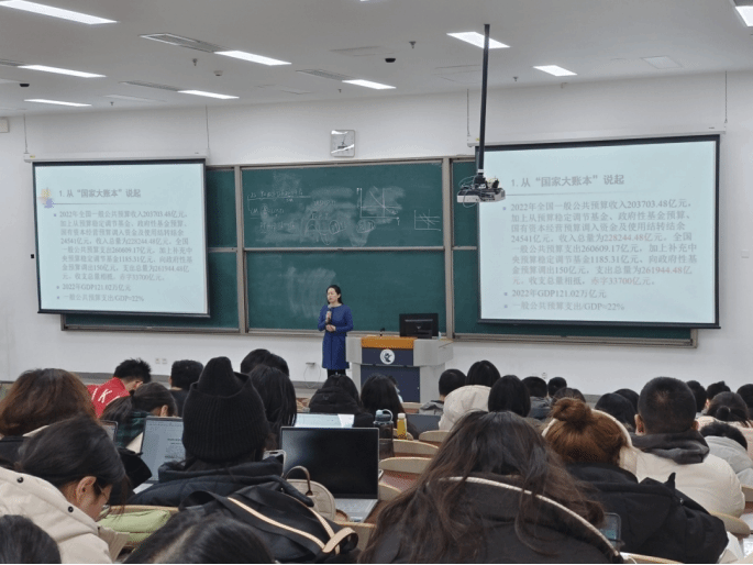 姜教授首先从国家大账本谈起,带领同学们回顾了我国前些年的财政预算收支情况,向同学们生动地揭示了财政学的核心——国家财政。姜教授强调,财政是国家治理的基础和重要支柱,每一位纳税人的每一分钱都是国家繁荣稳定的重要支持。讲座中,姜教授援引许多生活实例,向同学们介绍了“花钱矩阵理论”,探讨国家“大账本”在管理方面的困难与挑战。该理论是财政学中的一种重要理论框架,用以分析和解决资源配置中的各种问题,为了使财政最大化惠及民生,应当将权力关进制度的笼子,使之更好地改善人民生活,增强人民获得感幸福感。姜教授介绍了我国的各项财政制度,从《预算法》《政府采购法》等各类法律制度的完善,再到政府收支分类改革、全面实施预算绩效管理等各项制度的确立,我国财政管理体制在不断完善,财政管理的公信力和透明度也不断提高。尽管如此,姜教授仍强调改革任重道远。她介绍了我校与北京市人大共建的人大预算监督研究基地,并分享了一部分改革成果。姜教授号召同学们在财政学科领域继续深耕,为中国财政事业的持续发展贡献力量。通过聆听姜教授对于该理论的细致讲解,同学们对财政决策的制定过程有了初步的了解,极大地激发了同学们对于该领域探索学习的热情。
