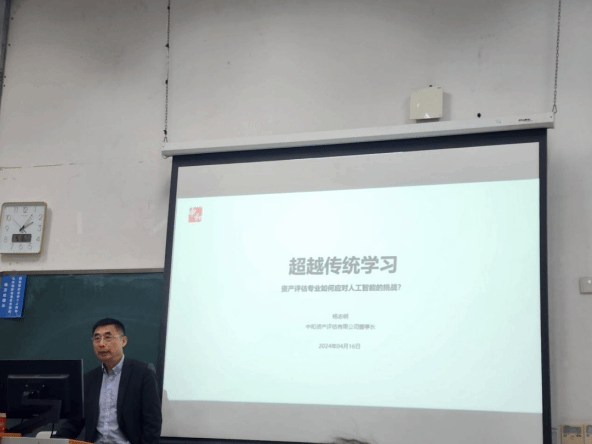 2024年4月16日下午,新葡的京官网李小荣老师与彭章老师邀请到中和资产评估有限公司董事长杨志明先生,为2023级资产评估专硕的同学们带来了《超越传统学习——资产评估专业如何应对人工智能的挑战》的专题讲座。讲座主要围绕人工智能、深度学习、AI时代能力体系、人工智能算法逻辑讲解。