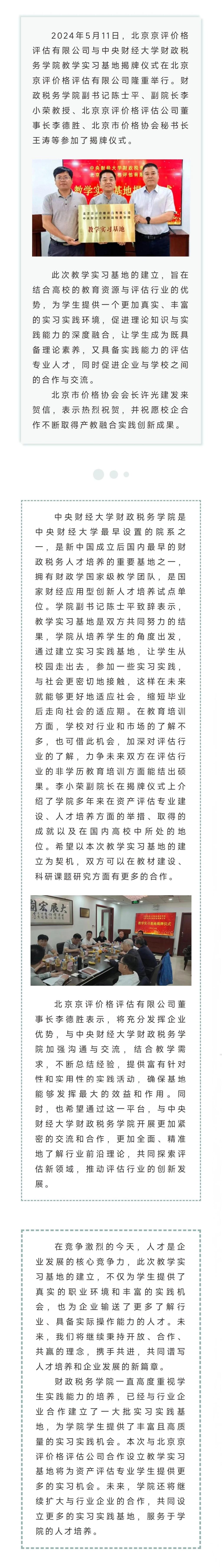 新葡的京集团8814与北京京评价格评估有限公司举办教学实习基地揭牌仪式
