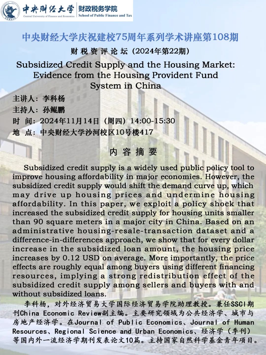 【财税资评论坛】补贴信贷供应和住房市场:中国住房公积金制度的证据