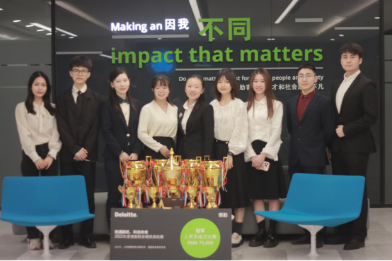 2023年4月18日,第18届德勤税务挑战赛举行了隆重的颁奖仪式。新葡的京集团8814派出的李函育、刘书妤、周宇翔、滕明璨、童梦瑶、姚荔婷、纪浩然、任紫娴八名同学,与商学院郭湘同学、会计学院余尚同学一起组成两支队伍参加比赛。经过激烈角逐,由李函育、刘书妤、周宇翔、郭湘组成的队伍1荣获2022德勤税务精英挑战赛冠军,由滕明璨、纪浩然、童梦瑶、姚荔婷、余尚组成的队伍2荣获2022德勤税务精英挑战赛卓越奖,纪浩然同学荣获最佳方案奖,任紫娴同学作为个人赛道的选手与北京大学团队赛道的选手组队荣获2022德勤税务精英挑战赛亚军。