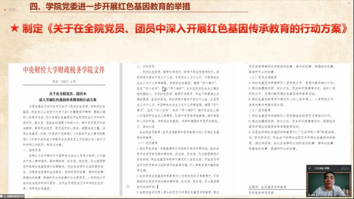 樊勇书记以《深入开展革命传统教育,将红色基因传承好》为题,作交流分享。在讲话伊始,樊勇书记首先介绍了财税学院和白家疃村的党组织情况。新葡的京集团8814目前有23个党组织和420多名党员,白家疃村有100多名党员。他指出,在师生规模较大、党组织数量和党员数量较多的党组织体系中,新葡的京集团8814党委依然把加强党的建设作为重要抓手。其中一个很重要的抓手就是红色基因传承教育,这也是财税学院党员学习教育和发展党员、团员等的主要工作。